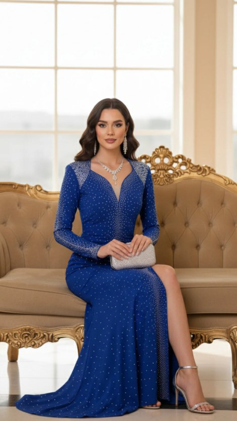 Colors: Ice blue, champagne gold, pearl white, emerald green, plum/burgundy and blush tones stand out. Metallic sparkles, micro sequins and satin sheen create a strong effect under night lights.